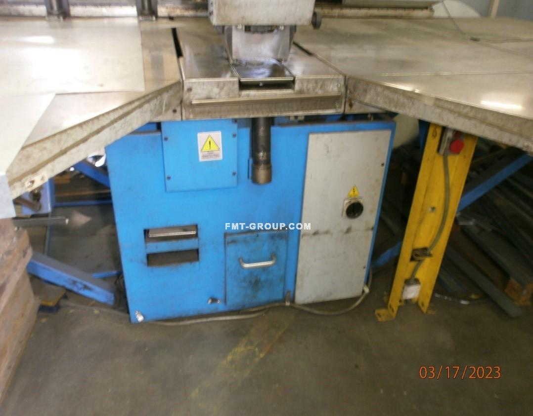 Pojezdy os x,y : 2000 x 1000 Tloušťka plechu : 6 mm Jmenovitá síla : 30t Zdvih : 60mm Počet zdvihů : 200/min. Výkon : 4kW Rozměry stroje : 4000 x 2800 x 1800 Hmotnost : 5250kg |