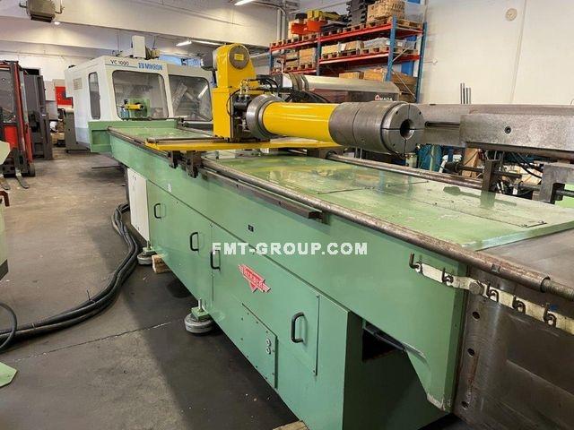 Max. průměr ohýbané trubky : 90 mm Max. tloušťka stěny : 5 mm Max. dlzka trubky : 4000 mm Výkon hlavního elektromotoru : 40 kW Radius min. max. : 50/400 Hmotnost stroje : 10 000 kg Rozmery stroja : 6,7 x 1,7 x 1,8 m |