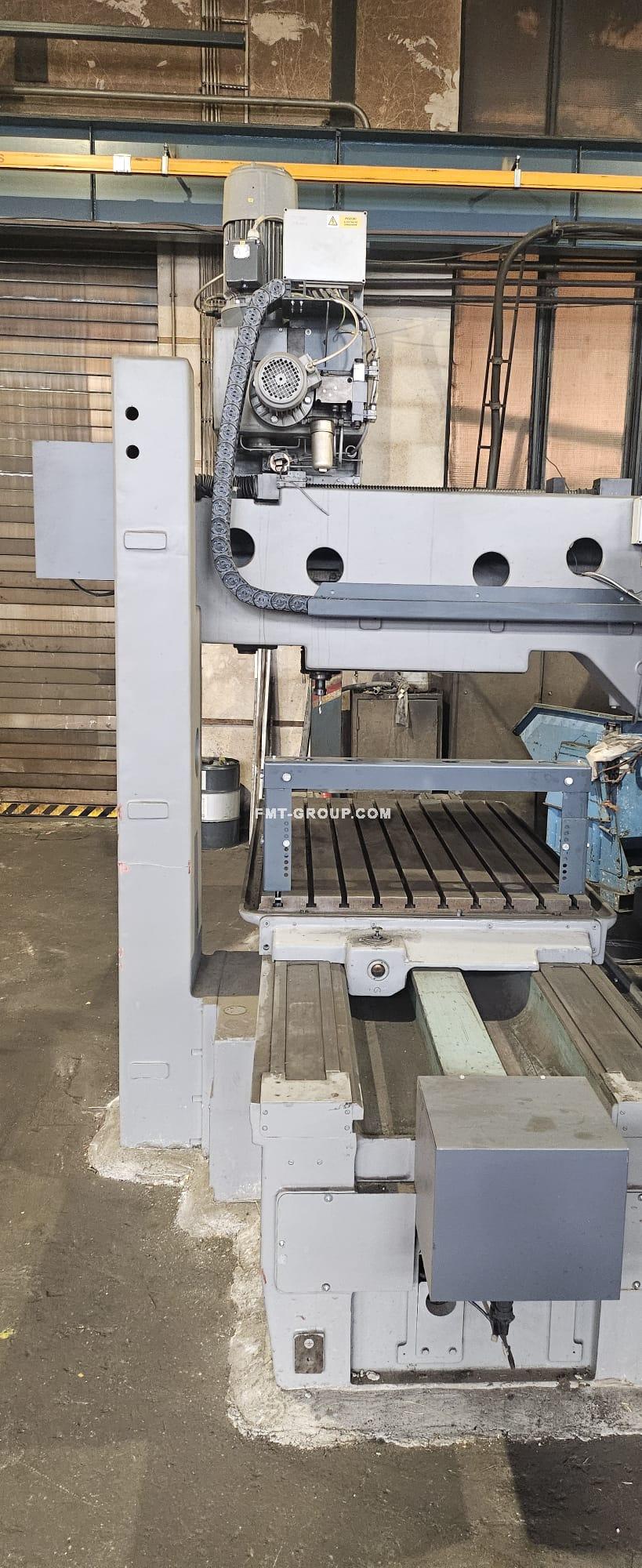Max. priemer vŕtania do ocele: : cca 50 mm Pracovní šířka stolu : 1000 mm Pracovní délka stolu : 1600 mm Kužel vretena: : ISO 40 Otáčky vretena: : 28-2500ot/min Rozmery stroja: : 4570×3360x3640 Hmotnosť: : okolo 8,8 t |